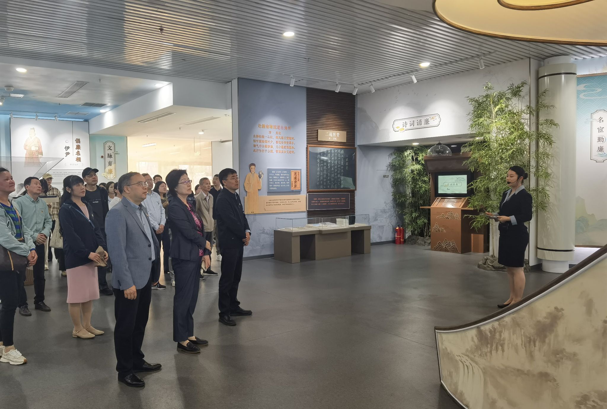 在现场警示教育阶段,学院各个党支部依次到连云港市廉洁文化馆开展现场学习。全体党员跟随讲解员的引导,共同观看了《山海廉韵》主题宣传片,依次参观了“序厅”“山海廉韵”“以案为鉴”“以廉润心”“爱‘连’说”五大廉洁主题展厅。通过专题教育片、图文实物展示、典型案例再现等学习方式,沉浸式学习了习近平总书记关于全面从严治党的重要论述,接受了思想淬炼和精神洗礼。