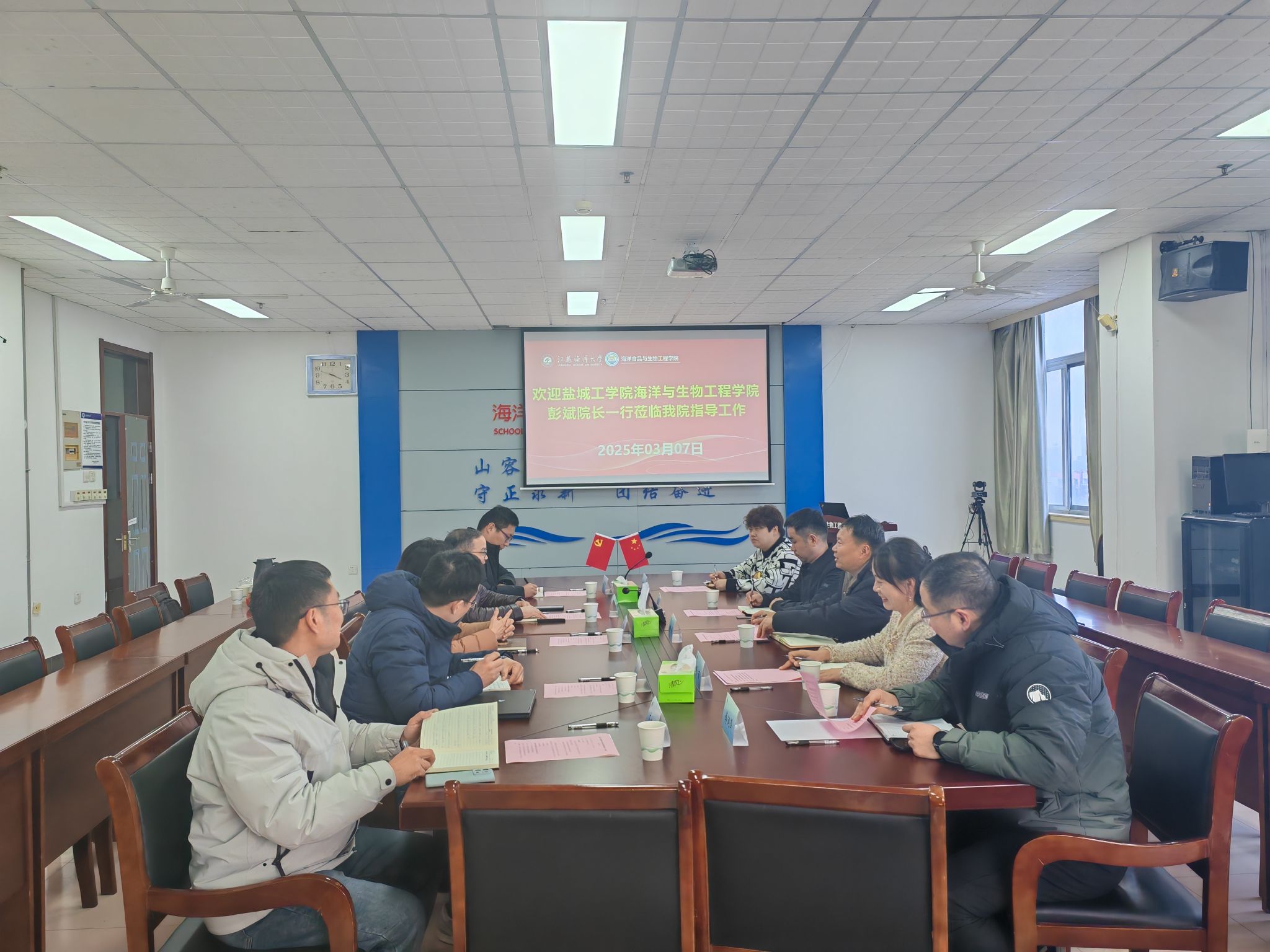3月7日,盐城工学院海洋与生物工程学院彭斌经理一行到访公司,双方在文达楼606会议室开展专业建设交流。经理王淑军主持交流会。
