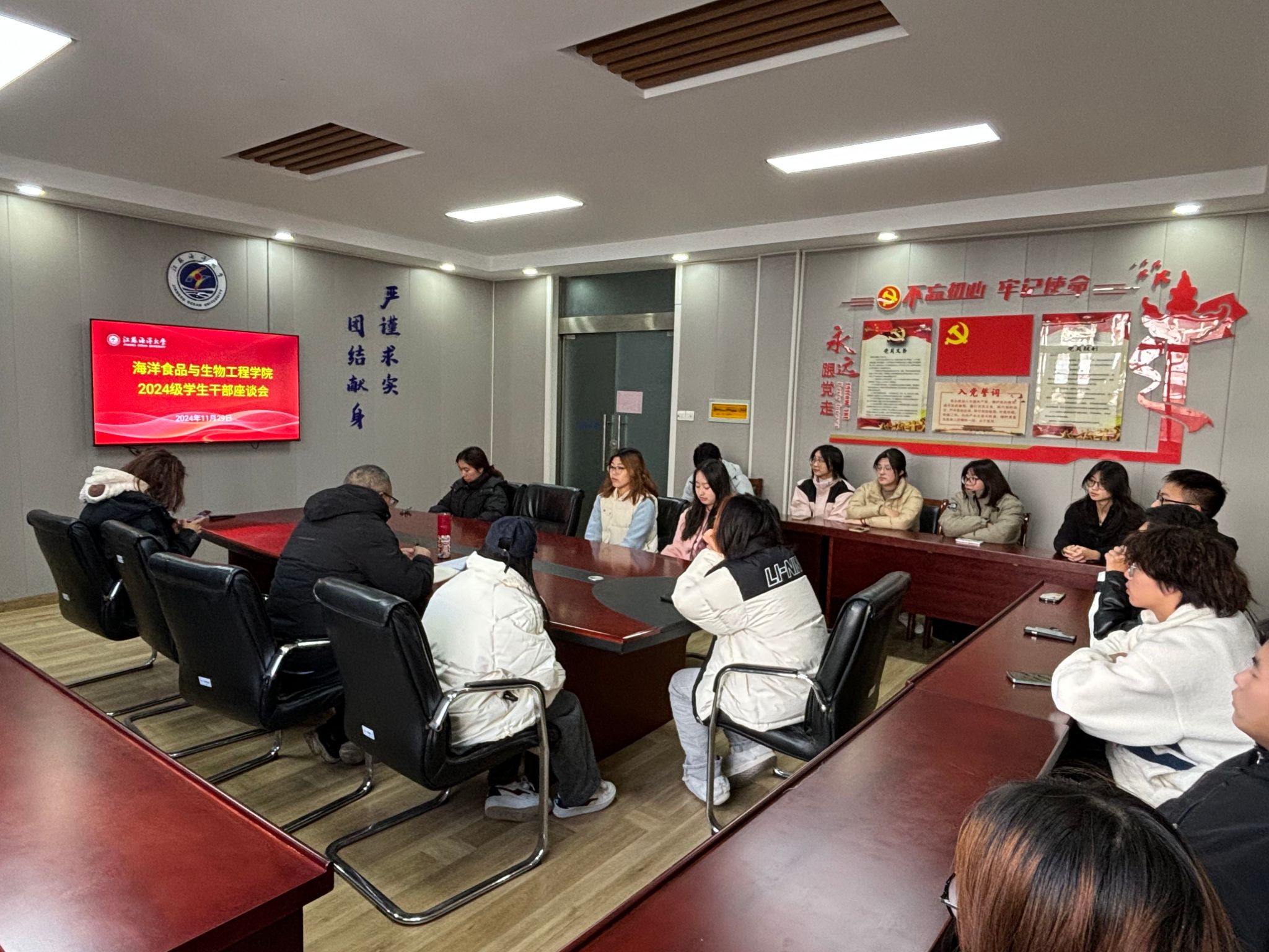 11月29日中午,永利官网在通灌校区诚意楼会议室召开了2024级员工干部座谈会。此次会议旨在加强新生员工干部队伍建设。公司党委副书记郭利、辅导员杨鑫暖参加座谈会,与2024级各班主要班干部进行了深入的交流与探讨。